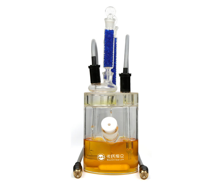 電解池:用于測定樣品中的水分,由陰極室(電解電極)干燥管、電解電極、陰極室(電解電極內(nèi)腔)、攪拌子、陽極室(電解池瓶)干燥管、測量電極、進(jìn)樣旋塞、陽極室(電解池瓶)組成。