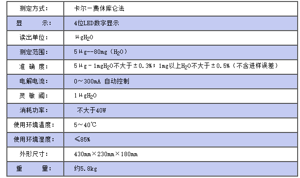 儀器符合GB/T7600及采用卡爾—費休法測定樣品中水分的有關標準,儀器采用了先進的自動控制電路,電解電流自動跟蹤控制,外型結(jié)構(gòu)新穎,從而使該儀器工作更可靠,使用更方便, 具有分析速度快(一分鐘出結(jié)果)、操作簡便、精度高、自動性強等特點,廣泛應用于石油、化工、電力、鐵路、環(huán)保等部門。