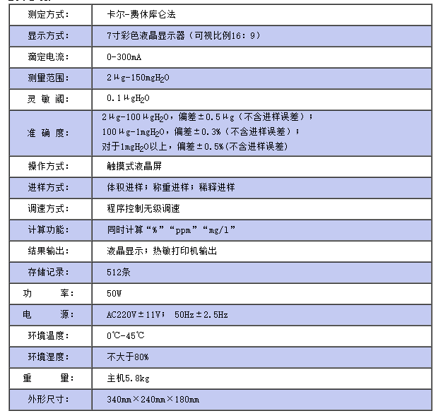 儀器符合GB/T7600及采用卡爾—費(fèi)休法測定樣品中水分的有關(guān)標(biāo)準(zhǔn), 是淄博庫侖分析儀器有限公司經(jīng)過幾代庫侖法微量水分測定儀的完善和改進(jìn),生產(chǎn)出的全新的具有人機(jī)對話功能新一代水分測定儀器。 該儀器采用雙CPU控制,測量精度、運(yùn)算功能大幅度提高,同時(shí),大屏幕彩色液晶顯示、觸摸屏控制、中文菜單,具有電極開路、短路報(bào)警等故障自檢功能,可儲存512條信息,自動計(jì)算并打印PPm、%、mg/L的測定結(jié)果。該儀器獲得三項(xiàng)國家專利。